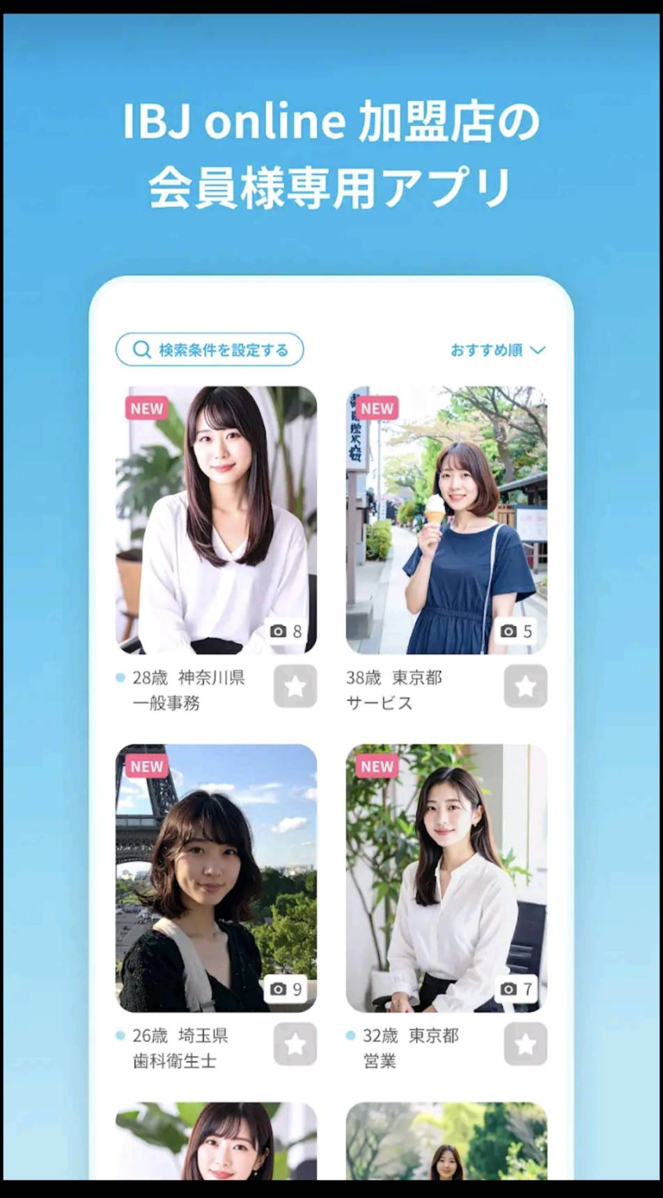 日本最大級のIBJネットワークを活用し、あなたにぴったりのお相手が探せます。